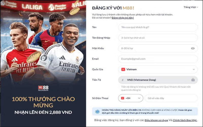 Quy trình đăng ký tài khoản M88 đơn giản và nhanh chóng